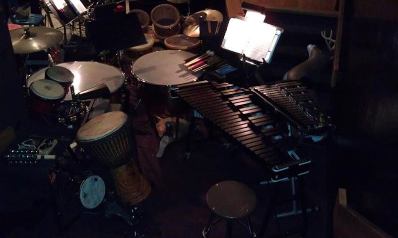 Above is my setup for “Shrek! The Musical,” in which I performed percussion during the Port Washington Summer Theatre Production.  This performance was very fun because it was a newer musical.  These newer parts tend to have a lot of genres mixed together, hence the many different percussion instruments in my setup.  I love playing djembe, so having those grooves to play (with a foot pedal tambourine) was probably the highlight of this setup/music.