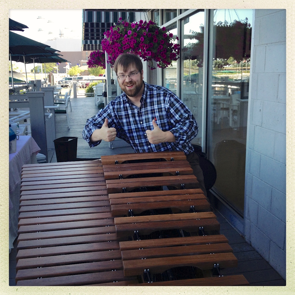 IMG_0779Speaking of, I am having fun playing these themes myself…  You see, just as many composers and conductors play piano to understand a score or to create and understand the totality of a musical work, I play marimba.  As this percussion ensemble piece is being orchestrated for the sextet at hand, I am also creating a solo marimba version that I will probably only play for myself and a few audiences.  The marimba along with singing and piano are some of the main avenues through which I create themes.  Then I may let those themes live and evolve in my mind and on pencil and paper before really knowing what the music wants to do.  I am just a vehicle for the music and marimba/voice/piano is how it most easily comes out!  Arrangements as well!